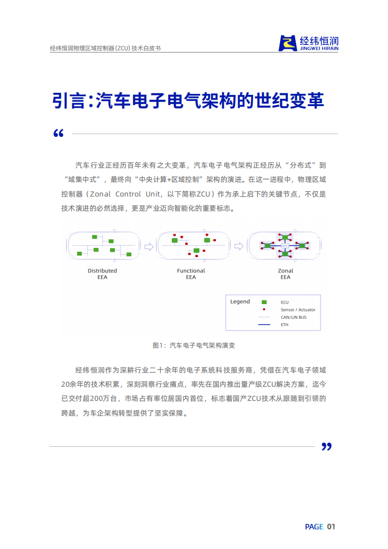 汽车行业正经历百年未有之大变革,汽车电子电气架构正经历从“分布式”到“域集中式”,最终向“中央计算+区域控制”架构的演进。在这一进程中,物理区域控制器(Zonal Control Unit,以下简称ZCU)作为承上启下的关键节点,不仅是技术演进的必然选择,更是产业迈向智能化的重要标志。经纬恒润作为深耕行业二十余年的电子系统科技服务商,凭借在汽车电子领域20余年的技术积累,深刻洞察行业痛点,率先在国内推出量产级ZCU解决方案,迄今已交付超200万台,市场占有率位居国内首位,标志着国产ZCU技术从跟随到引领的跨越,为车企架构转型提供了坚实保障。