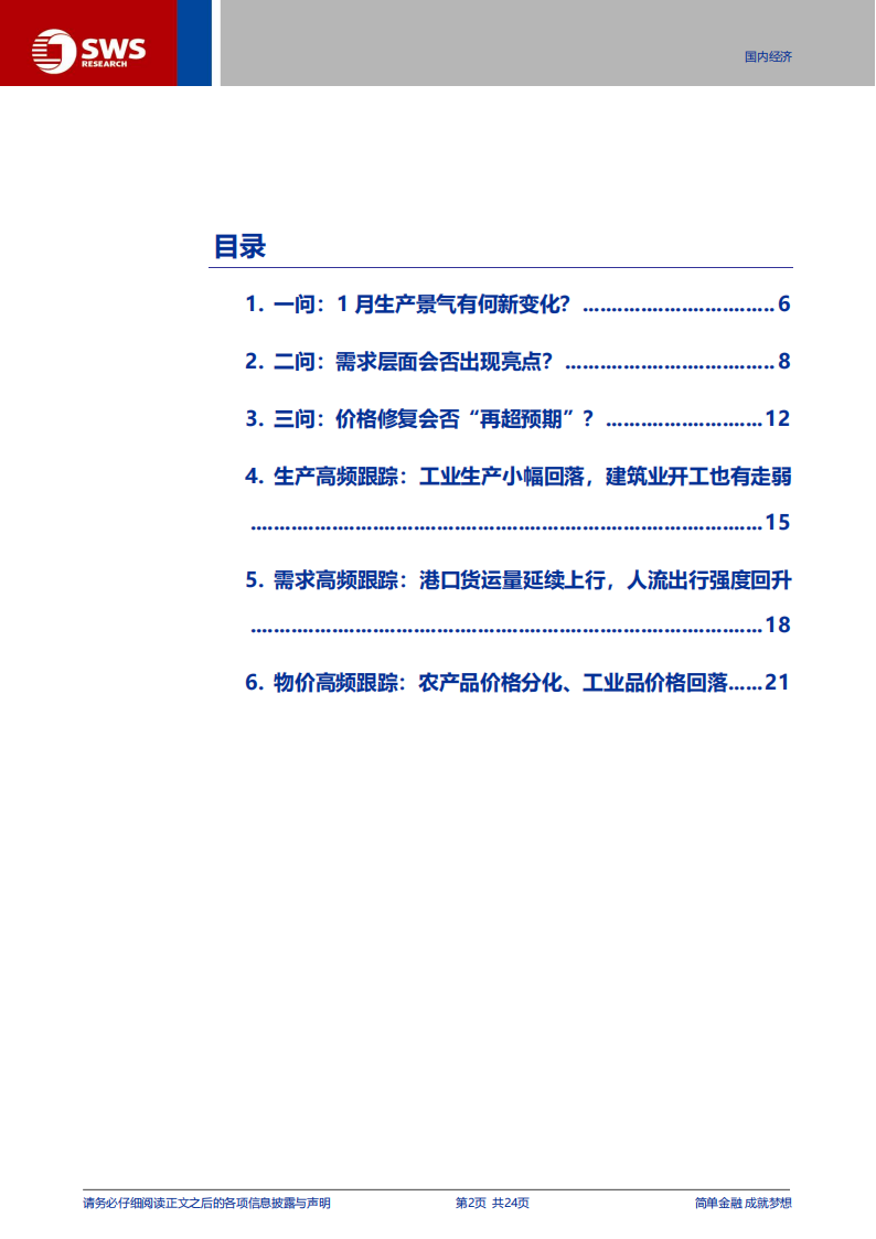 一问:开年生产景气有何新变化?春运返乡或有提前,可能对供给端产生一定压制。