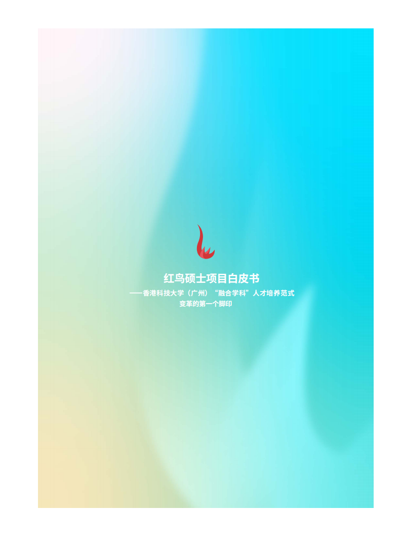 《红鸟硕士项目白皮书》(简称《白皮书》)详细介绍了港科大(广州)RBM项目开展育人范式变革的策略与方法,系统阐释了红鸟硕士项目创新框架,包括其设计理念、实施过程、效果和影响、遇到的问题和挑战,以及反思和迭代思路。《白皮书》的读者主要包括港科大(广州)参与RBM项目的教育共同体成员、全球教育政策制定者、教育行政管理者、教师、潜在学生以及其他对港科大(广州)育人范式改革感兴趣的同道中人。