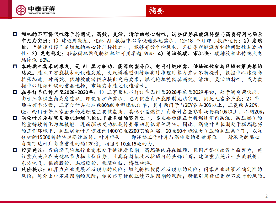 风险提示:AI算力产业发展不及预期的风险;燃气轮机投资不及预期的风险;国家产业政策不确定性的风险;海外出口不及预期的风险;相关推荐标的业绩不达预期的风险;研报引用数据更新不及时的风险。