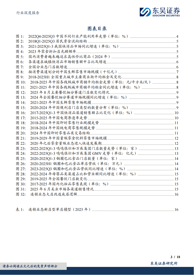 ■租金下行叠加线上增速放缓,优质连锁业态天花板再度打开。一方面,受宏观经济和消费预期影响,商铺租赁市场整体遇冷,全国主要商业街及各线级城市商铺租金普遍承压,尤其三线城市跌幅显著。这为依赖线下门店的连锁业态带来了直接的成本红利。另一方面,线上电商的高速扩张期已结束,渗透率在2024-2025年稳定于24%-26%。在此背景下,以生鲜店、便利店为代表的社区刚需业态展现出强大韧性,其需求支撑性强,成为难以被线上替代的基础设施。即时零售作为新引擎快速崛起,其发展高度依赖本地实体门店网络,将线下门店转化为前置仓,利好拥有密集网点的连锁企业。