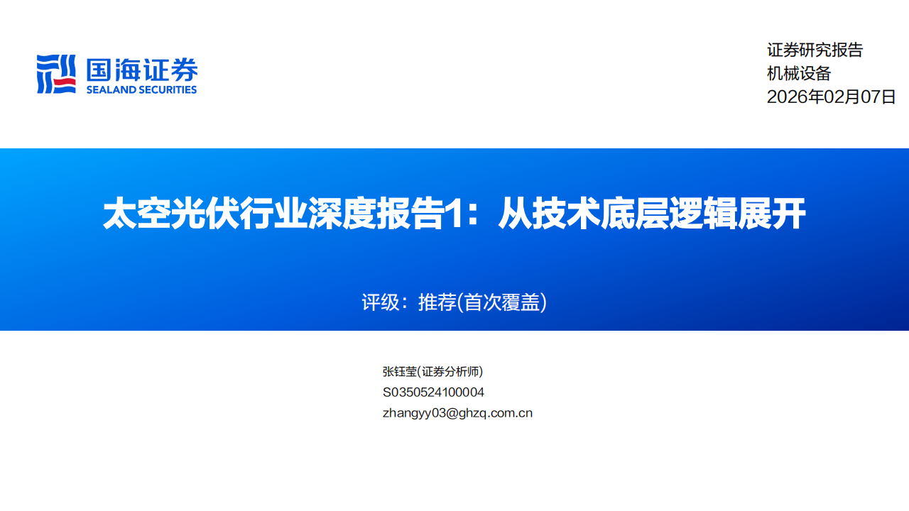行业评级:卫星发射加速,光伏电池新技术持续验证,太空光伏行业景气度与中长期成长确定性持续抬升,首次覆盖,给予太空光伏行业“推荐”评级。