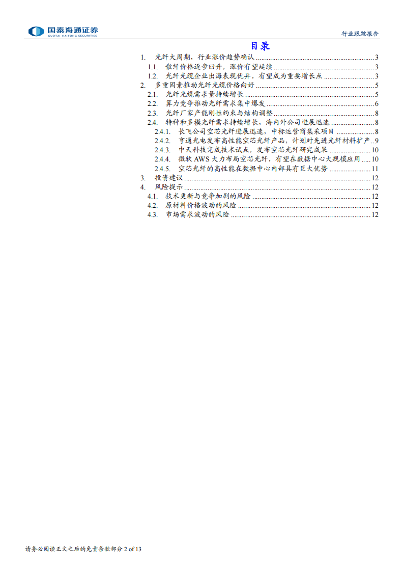 1.光纤大周期,行业涨价趋势确认
