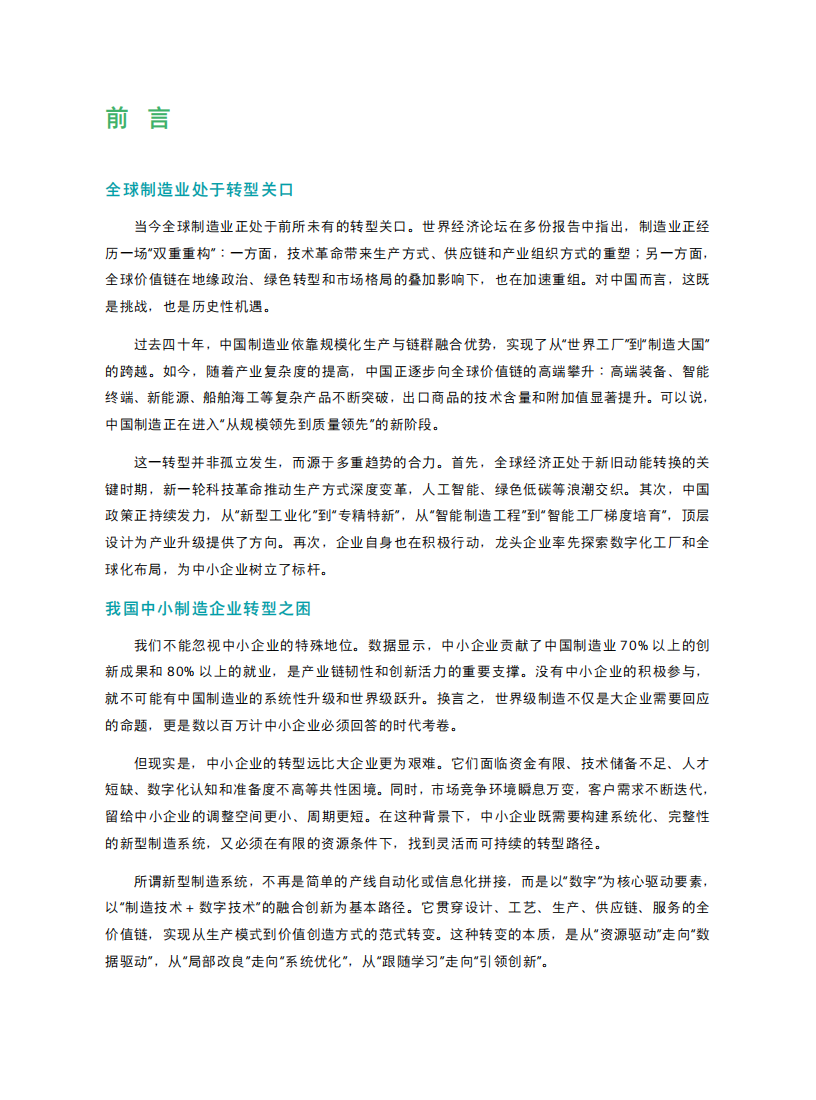 本报告的目标,正是为中小企业提供一套方法论:从理解大势,到认知挑战;从发现问题,到设计方案;从“积木式”搭建,到系统化升级。我们希望,本报告能成为中小企业穿越不确定性的灯塔,成为推动中国制造走向世界级制造的实践指南。