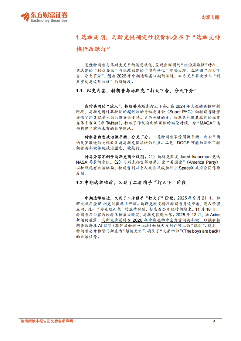 1.选举周期,马斯克链确定性投资机会在于“选举支持换行政绿灯”