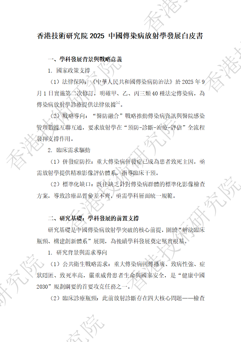 香港技術研究院2025中國傳染病放射學發展白皮書