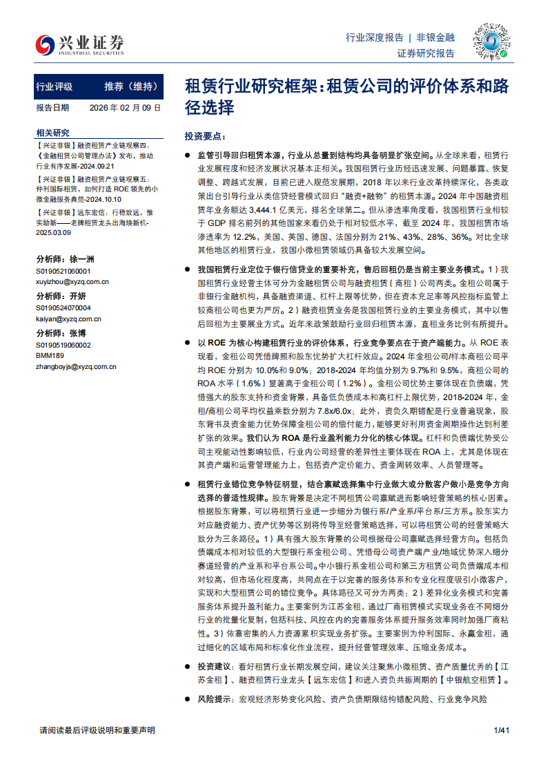 租赁行业研究框架:租赁公司的评价体系和路径选择.pdf