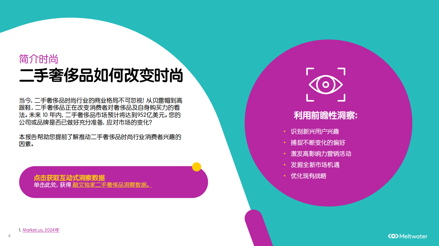 本报告帮助您提前了解推动二手奢侈品时尚行业消费者兴趣的因素。