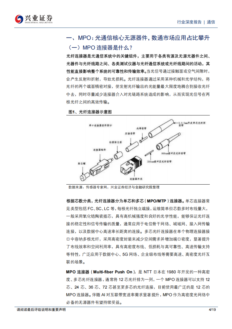 一、MPO:光通信核心无源器件,数通市场应用占比攀升(一)MPO连接器是什么?