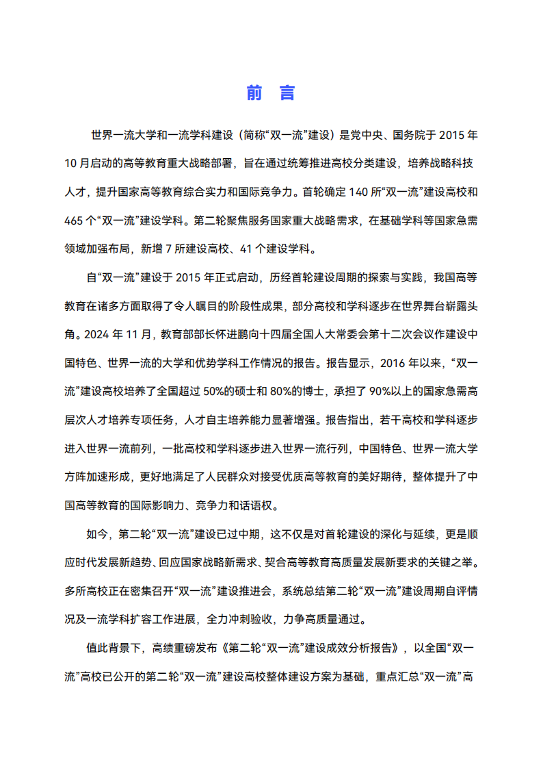 第一章全国“双一流”高校第二轮“双一流”建设目标