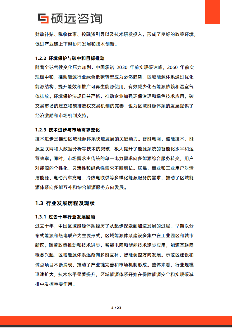 过去十年,中国区域能源体系经历了从起步探索到加速发展的过程。早期以分布式能源和热电联产为主要形式,区域能源体系建设多集中在工业园区和城市新区。随着政策推动和技术进步,智能电网和储能技术逐步应用,能源互联网概念兴起,区域能源体系逐渐向多能互补、智能调控方向发展。示范区建设和试点项目不断涌现,推动了产业链完善和市场机制形成。整体来看,行业规模迅速扩大,技术水平显著提升,区域能源体系开始在保障能源安全和实现碳减排中发挥重要作用。
