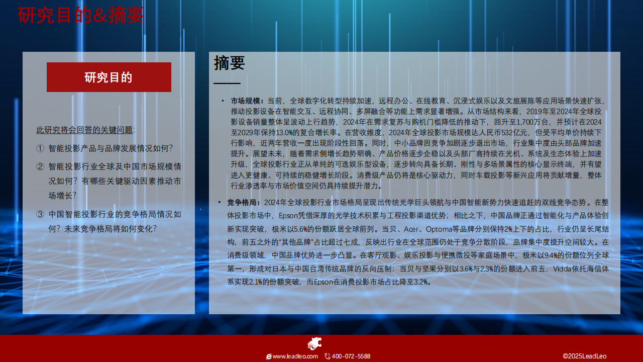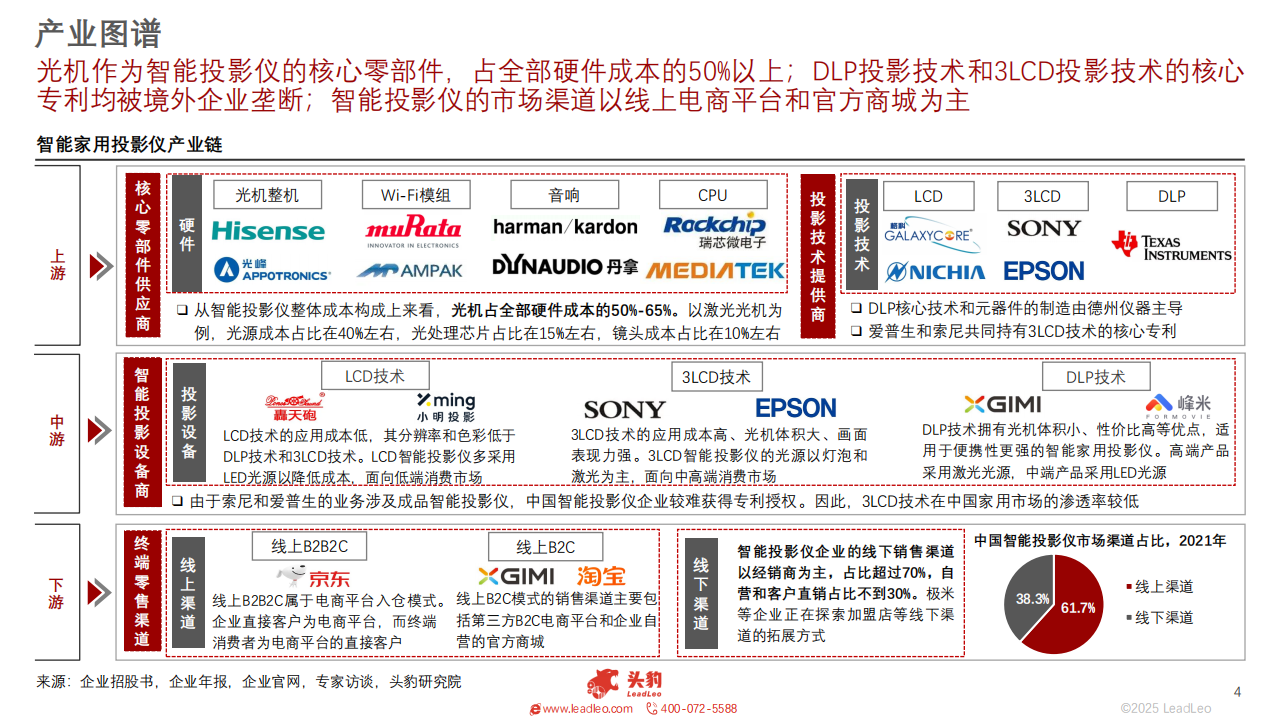 ·竞争格局:2024年全球投影行业市场格局呈现出传统光学巨头领航与中国智能新势力快速追赶的双线竞争态势。在整