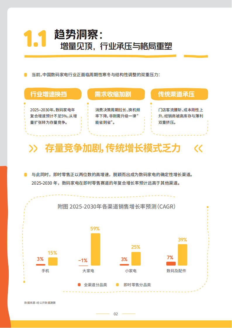 2025-2030年,数码家电在即时零售赛道的年复合增长率预计远高于其他渠道。