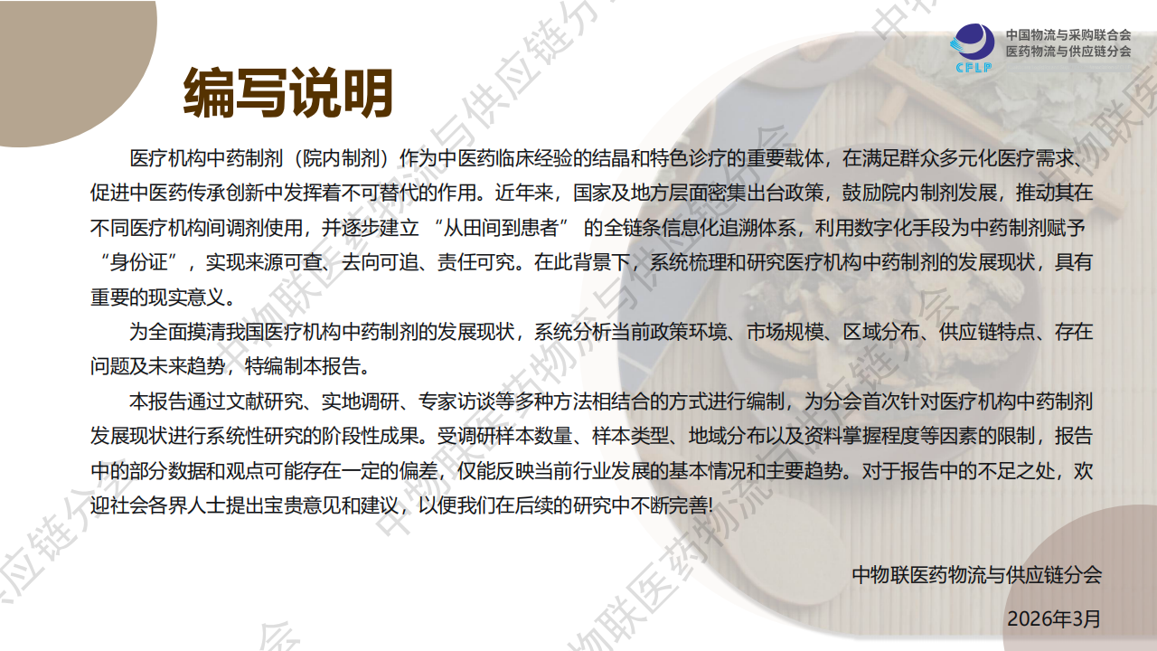 为全面摸清我国医疗机构中药制剂的发展现状,系统分析当前政策环境、市场规模、区域分布、供应链特点、存在问题及未来趋势,特编制本报告。