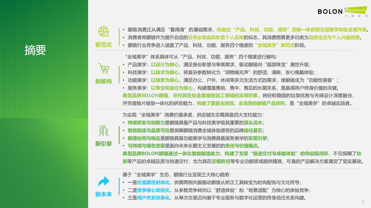 ·眼镜行业竞争进入涵盖了产品、科技、功能、服务四个维度的“全域美学”新范式阶段。