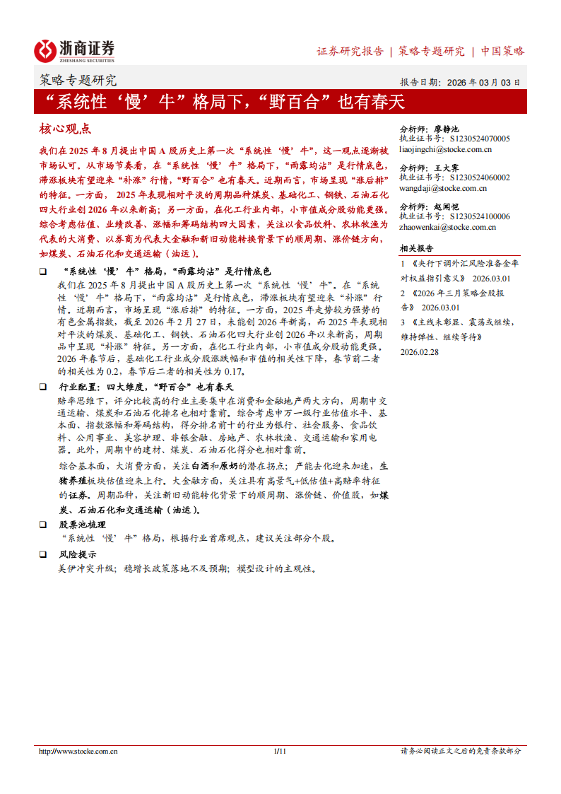 策略专题研究:“系统性‘慢’牛”格局下,“野百合”也有春天.pdf