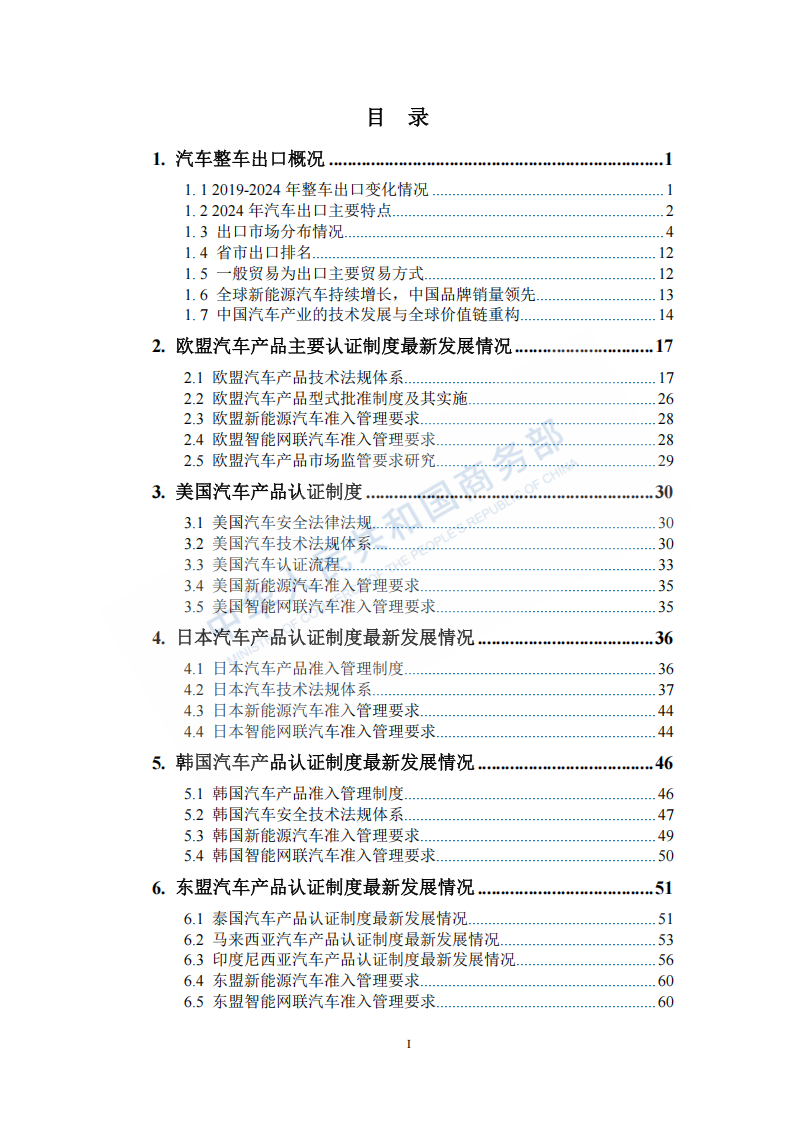 本《技术指南》开篇介绍了2019至2024年我国汽车出口整体情况和主要特点,就分车型(整车、乘用车、商用车)海外市场分布、汽车出口主要省市及贸易方式展开系统梳理,对我国汽车产品全球竞争力进行了总结分析。同时,重点围绕发达国家汽车市场,以及中国汽车出口热门和新兴市场的技术法规要求、准入管理制度及其特点,展开系统、深入的介绍。这些市场包括欧洲、美国、日本、韩国等发达国家市场,以及东盟、欧亚经济联盟、中亚、海湾合作委员会(GCC)、澳大利亚、拉丁美洲和南非等中国汽车出口的主要市场。