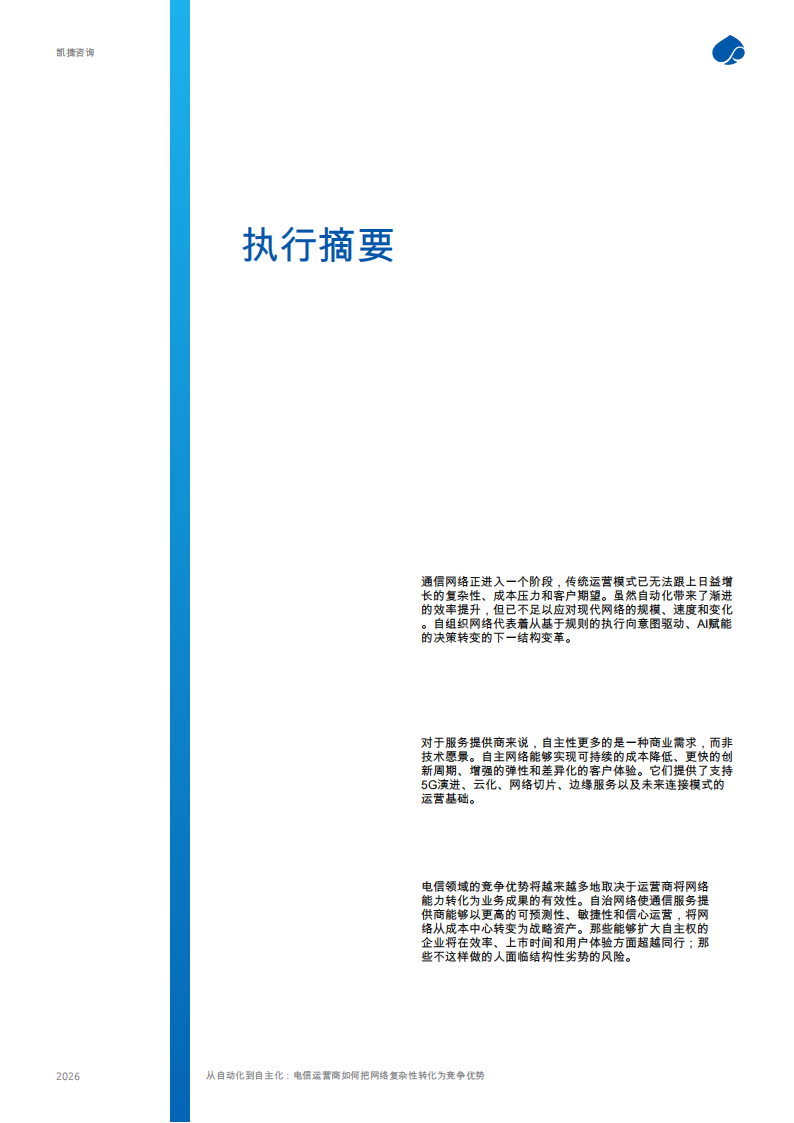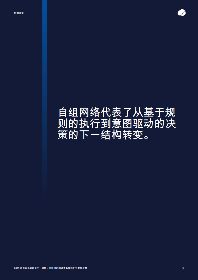 自动化关注于更高效地执行预定义任务。自主性更进一步:它使网络能够理解意图,评估选项,在规定的范围内独立行动,并从结果中持续学习。这一转变从根本上改变了网络的操作、治理和盈利方式。