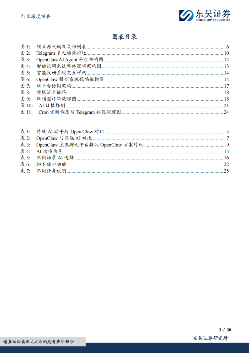 ■ OpenClawAIAgent 赋能全链路智能投研,”对话即编程”开创行业新范式:本系统基于OpenClaw持久化AI Agent框架构建,深度整合Skills技能系统(16个专业投研技能)、Cron定时调度(9个自动化任务)、长期记忆系统(MEMORY.md持久化)和Telegram 推送,实现从数据采集、信号生成、研究输出到投资决策的全链路覆盖。累计产出18个Python脚本(约8588行代码),多套固化工作流,分析师通过自然语言对话即可驱动专业级投研分析,无需编程。