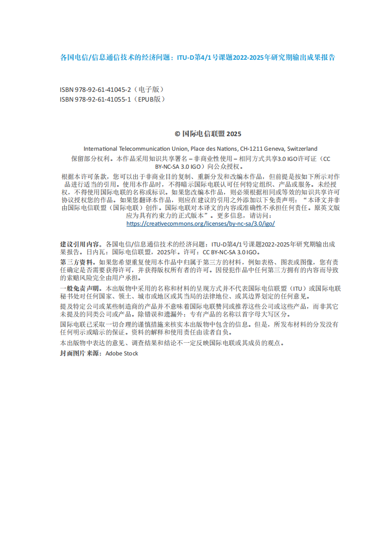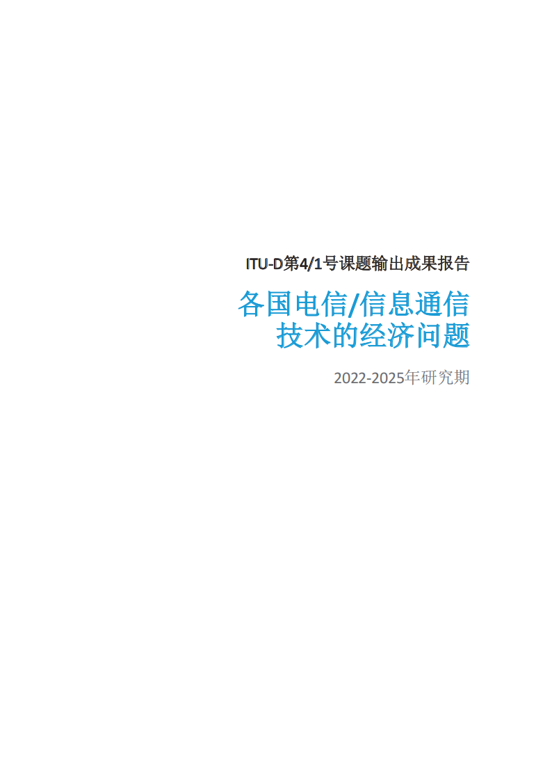 本报告是针对“第4/1号课题:各国电信/信息通信技术的经济问题”编写的,由ITU-D