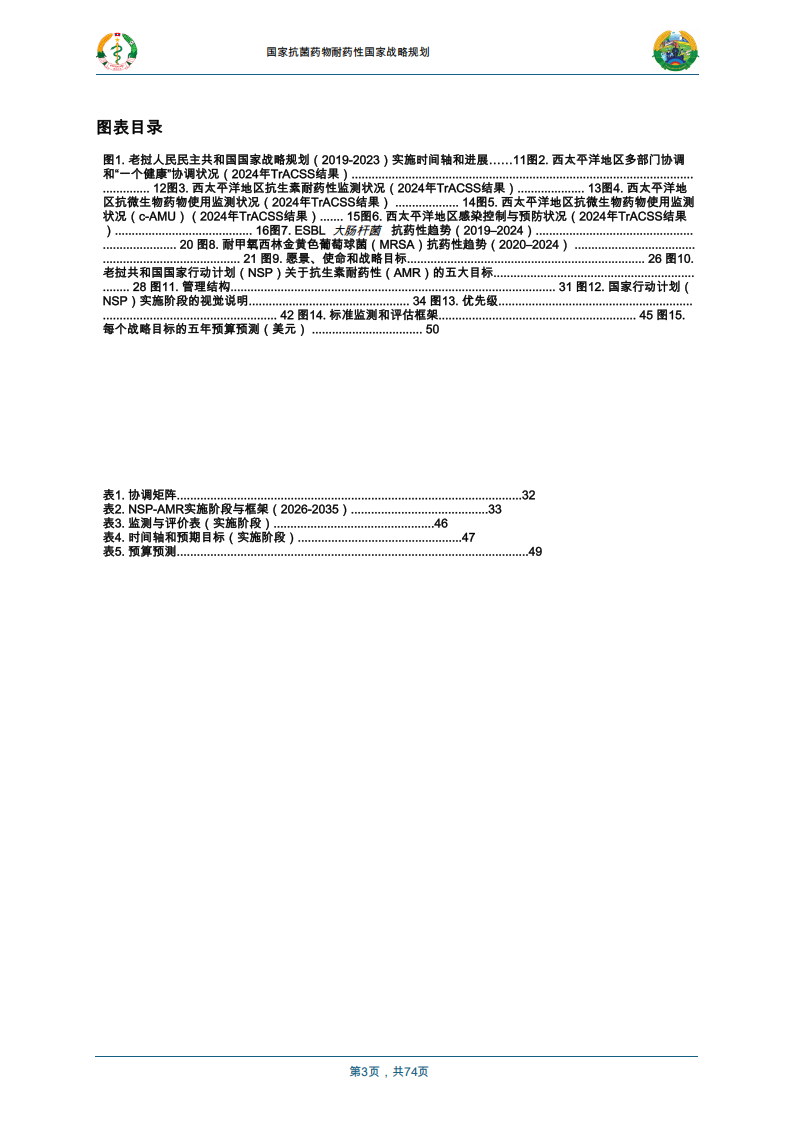 《老挝人民民主共和国(PDR)关于抗生素耐药性(2026-2035年)的全国战略规划更新版》旨在通过实施综合、多领域和全国领导的战略,以保障老挝人民的福祉,在国家层面上应对抗生素耐药性(AMR)这一日益严重的全球公共卫生威胁。包括实施具有针对性的监控系统、成本效益的预防策略以及符合全球和区域AMR努力的研发计划。修订后的战略中的一个关键更新是其致力于将人民置于战略框架的核心,并在全国范围内提高AMR诊断和治疗服务的可及性;这些问题在以往并未得到充分解决。