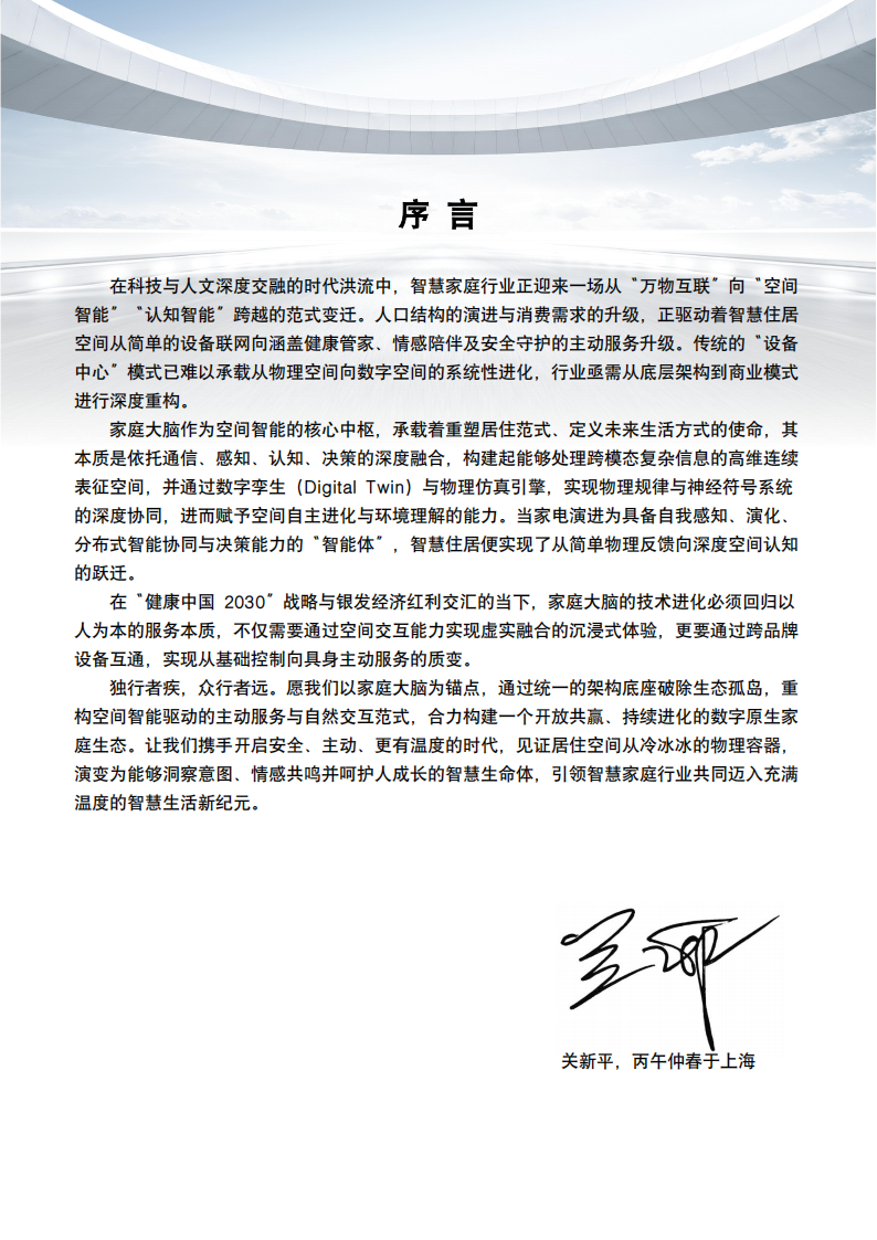 独行者疾,众行者远。愿我们以家庭大脑为锚点,通过统一的架构底座破除生态孤岛,重构空间智能驱动的主动服务与自然交互范式,合力构建一个开放共赢、持续进化的数字原生家庭生态。让我们携手开启安全、主动、更有温度的时代,见证居住空间从冷冰冰的物理容器,演变为能够洞察意图、情感共鸣并呵护人成长的智慧生命体,引领智慧家庭行业共同迈入充满温度的智慧生活新纪元。