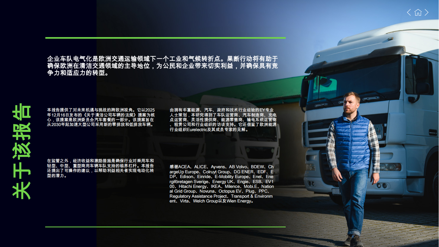 企业车队很重要,因为它们行驶了最多的公里数。车队汽车占直接道路运输二氧化破排放量的约45%,轻型商用车(LCVs)负责约12%.而卡车全面短队电气化公交车占27%,到2030年可以熏少约10亿吨二氧化碳排放。大约占欧望和英国2025年至2030年预计摔放总量5%。这是实现欲望适应55和绿色协议立法框架中设定的目标的关键一步。