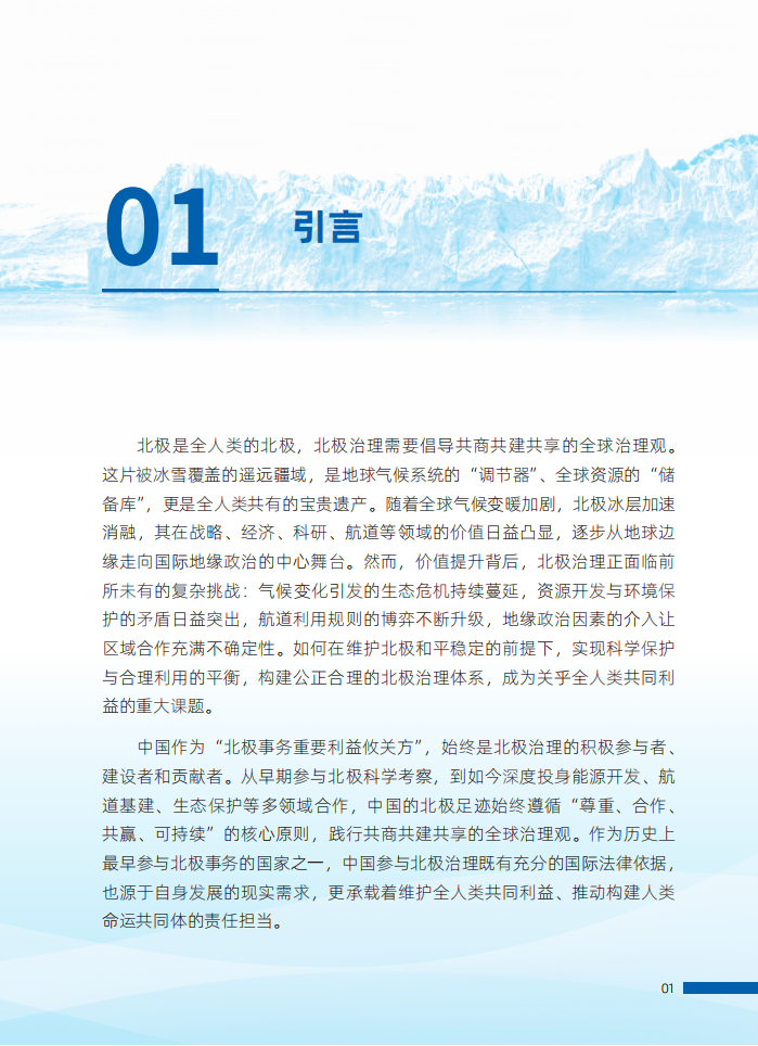 中国作为“北极事务重要利益攸关方”,始终是北极治理的积极参与者、建设者和贡献者。从早期参与北极科学考察,到如今深度投身能源开发、航道基建、生态保护等多领域合作,中国的北极足迹始终遵循“尊重、合作、共赢、可持续”的核心原则,践行共商共建共享的全球治理观。作为历史上最早参与北极事务的国家之一,中国参与北极治理既有充分的国际法律依据,也源于自身发展的现实需求,更承载着维护全人类共同利益、推动构建人类命运共同体的责任担当。