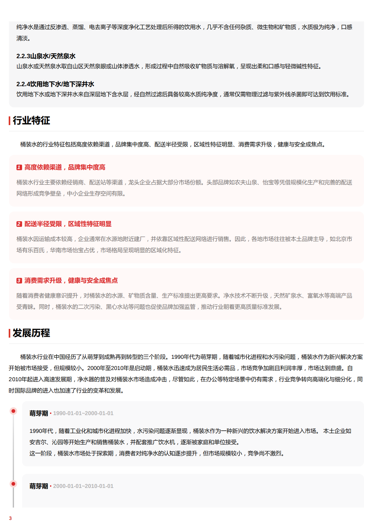 桶装水的行业特征包括高度依赖渠道,品牌集中度高、配送半径受限,区域性特征明显、消费需求升级,健康与安全成焦点。