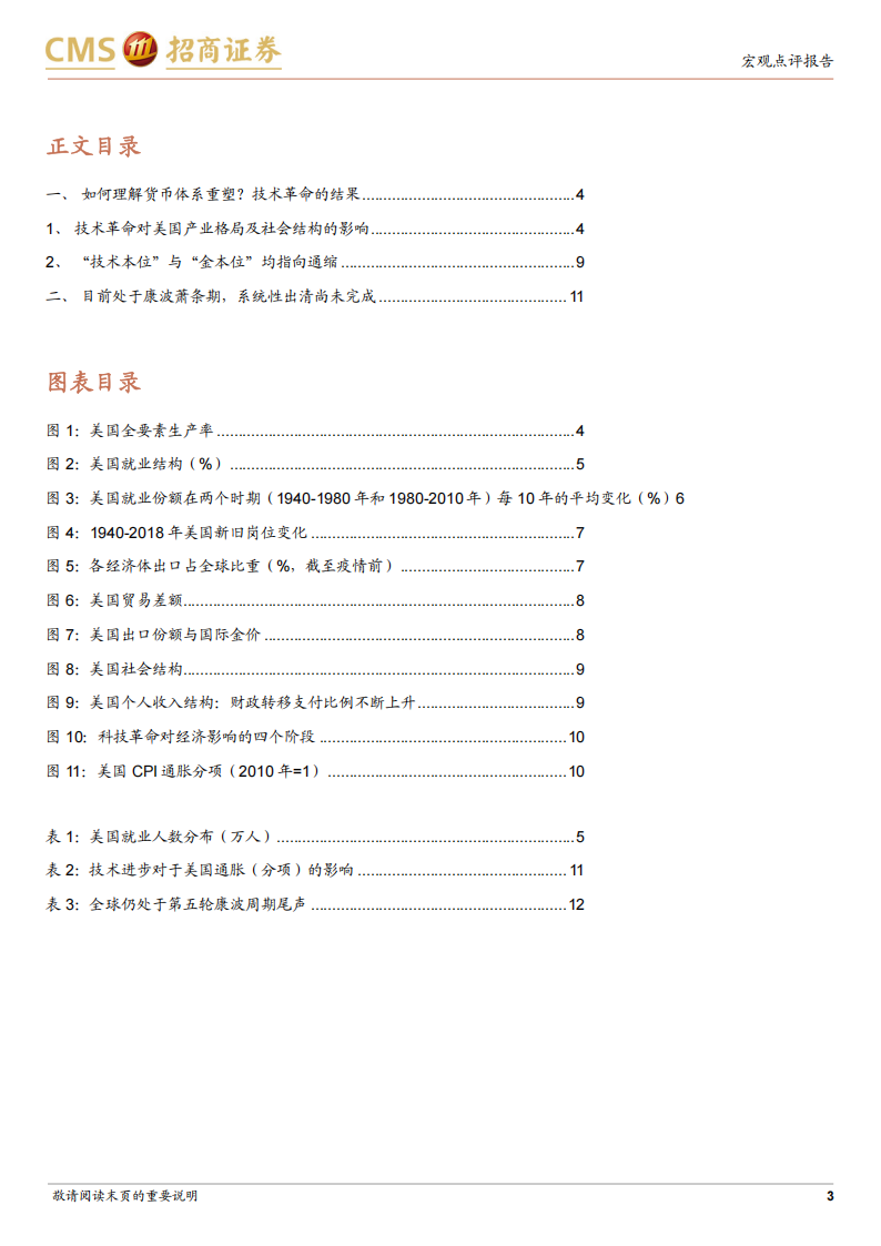 2)“技术本位”与“金本位”均指向通缩。“技术本位”即以新兴技术为锚去定义所有产品的价值。显然,能够用技术去推动量产的标准化产品在过去几十年都出现了价格的下跌,因此技术进步本身容易引发通缩,与“金本位”类似。从历史经验看,科技革命中后期易引发失业潮,缺乏现代政策手段时期容易引发通缩甚至萧条。