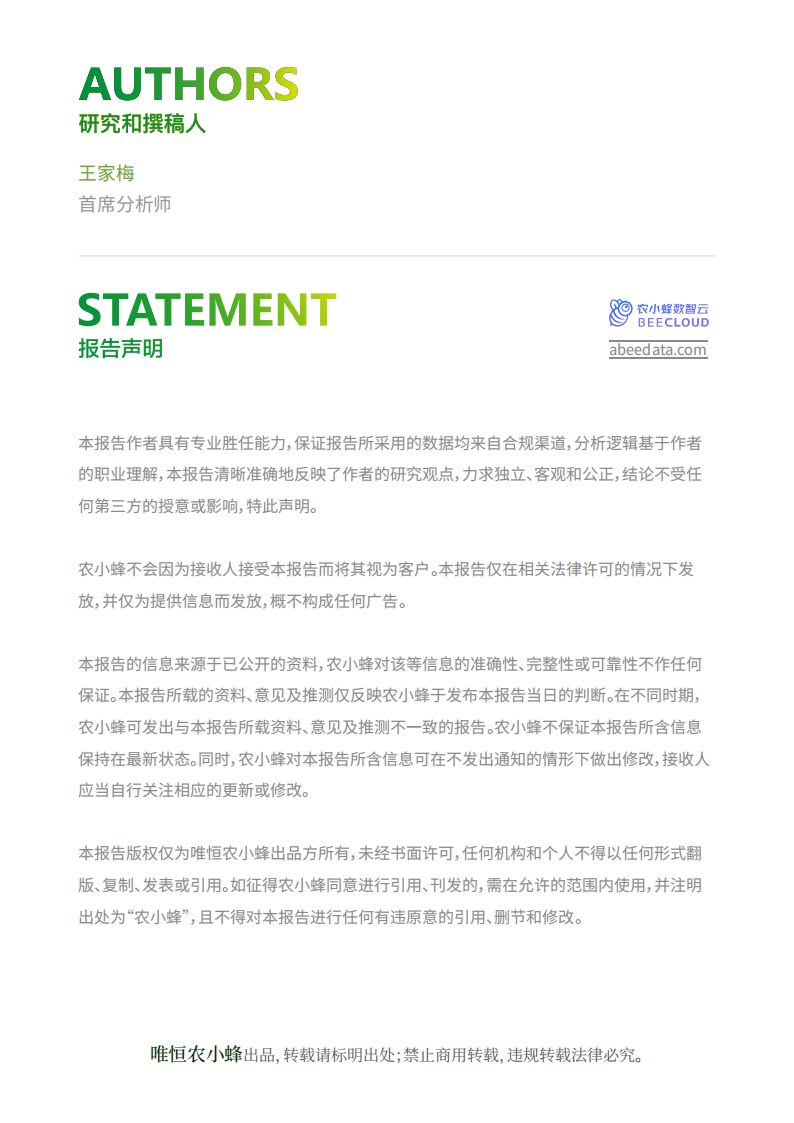 本文基于农小蜂在运营过程中积累的全国生猪产能、消费、贸易、价格数据,对全国生猪生产、消费及市场行情波动情况进行分析,为从事生猪产业链上下游科研、育种、养殖、加工、仓储、包装、保鲜、运输、销售等活动的主体及社会服务机构提供参考。