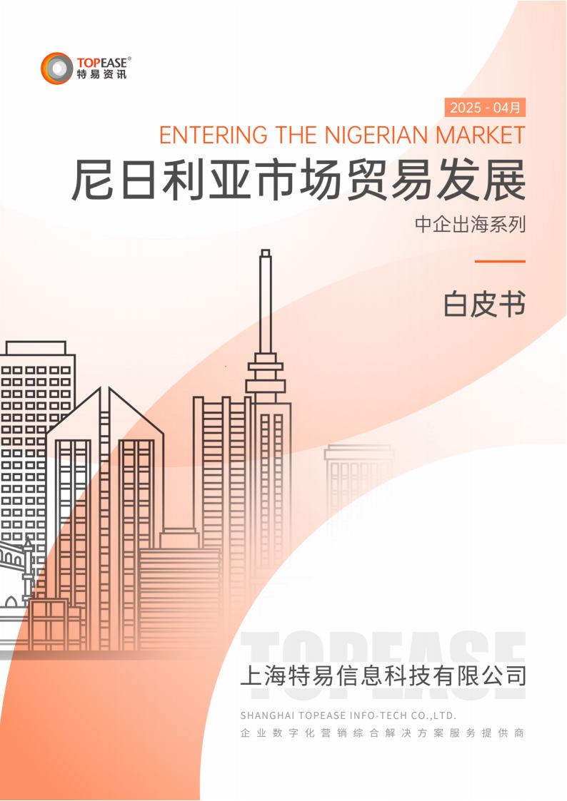 本白皮书基于特易资讯对中尼贸易数据的深度挖掘与实地调研,系统梳理了尼日利亚的产业生态、交通物流网络、双边贸易趋势及市场准入规则,旨在为企业提供全景式市场洞察。通过详尽的贸易产品TOP100榜单分析、客户行为特征剖析以及风险应对指南,本书将助力企业精准锚定市场机会,规避潜在风险,在这片充满活力的土地上实现可持续增长。无论您是深耕非洲多年的老牌出海者,还是正筹备开拓新市场的开拓者,本报告都将是您把握中尼经贸合作黄金窗口期的关键指南。