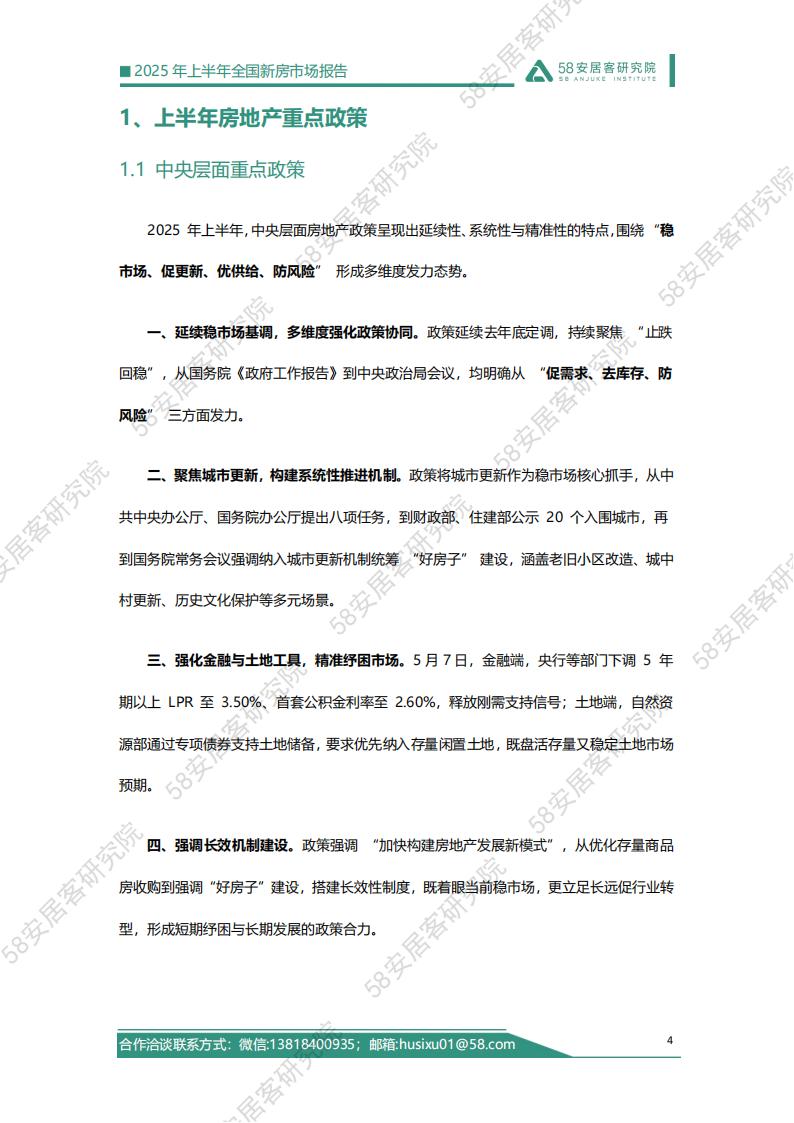 2025年上半年,中央层面房地产政策呈现出延续性、系统性与精准性的特点,围绕“稳市场、促更新、优供给、防风险”形成多维度发力态势。