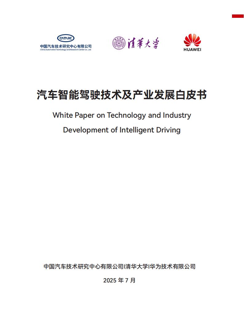 与此同时,由于技术发展与用户认知的不匹配,市场中存在过度营销现象,智能驾驶技术相关功能概念”不清晰、不明确、易滥用”等问题日益突出。基于此,中国汽车技术研究中心有限公司、清华大学、华为技术有限公司联合编写了《汽车智能驾驶技术及产业发展白皮书》,从“产学研”角度联合研判汽车智能驾驶产业发展趋势,明晰智能驾驶发展过程中相关易错、易混的概念,分析智能驾驶相关技术原理与发展水平,研究智能驾驶安全体系建设要求,明确智能驾驶技术产业政策法规与合规要求,阐述以智能驾驶技术为核心的整车智能化路线演变方向。希望通过白皮书的发布与传播,协助智能驾驶产业能够成为更加具象化的新质生产力,激发行业及全社会的创新活力,助力汽车强国与交通强国建设。