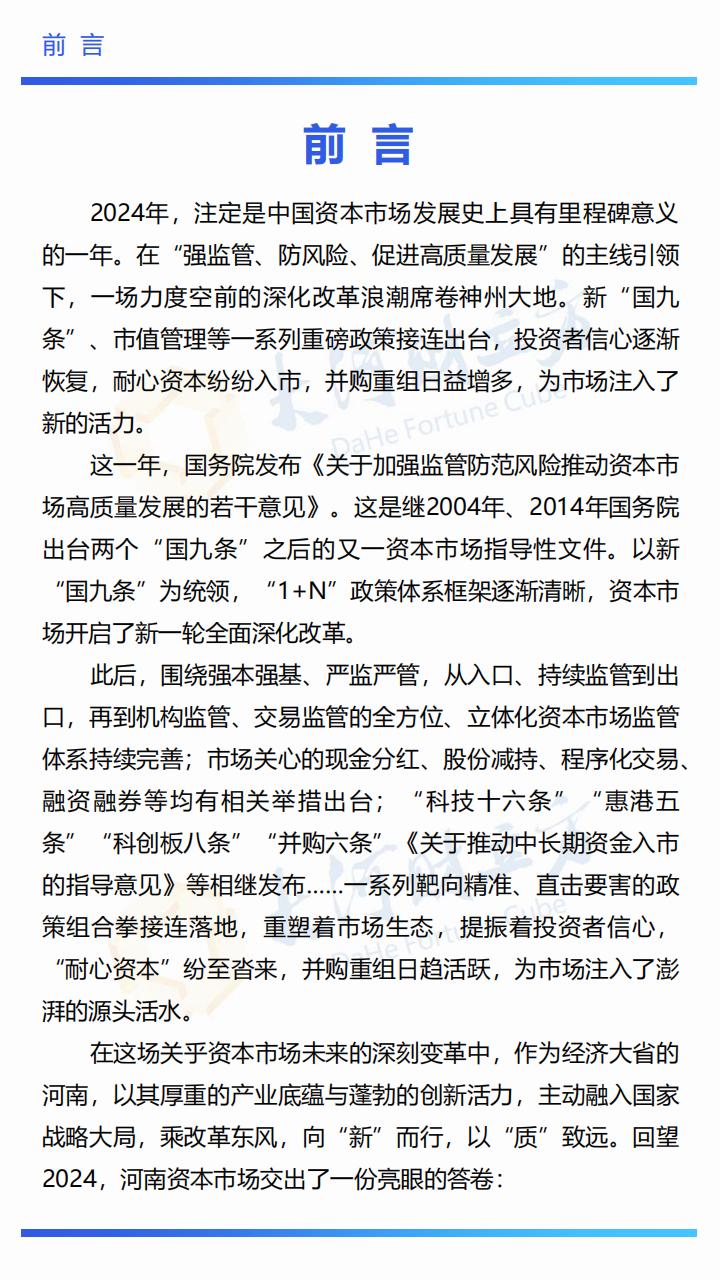 2024年,注定是中国资本市场发展史上具有里程碑意义的一年。在“强监管、防风险、促进高质量发展”的主线引领下,一场力度空前的深化改革浪潮席卷神州大地。新“国九条”、市值管理等一系列重磅政策接连出台,投资者信心逐渐恢复,耐心资本纷纷入市,并购重组日益增多,为市场注入了新的活力。