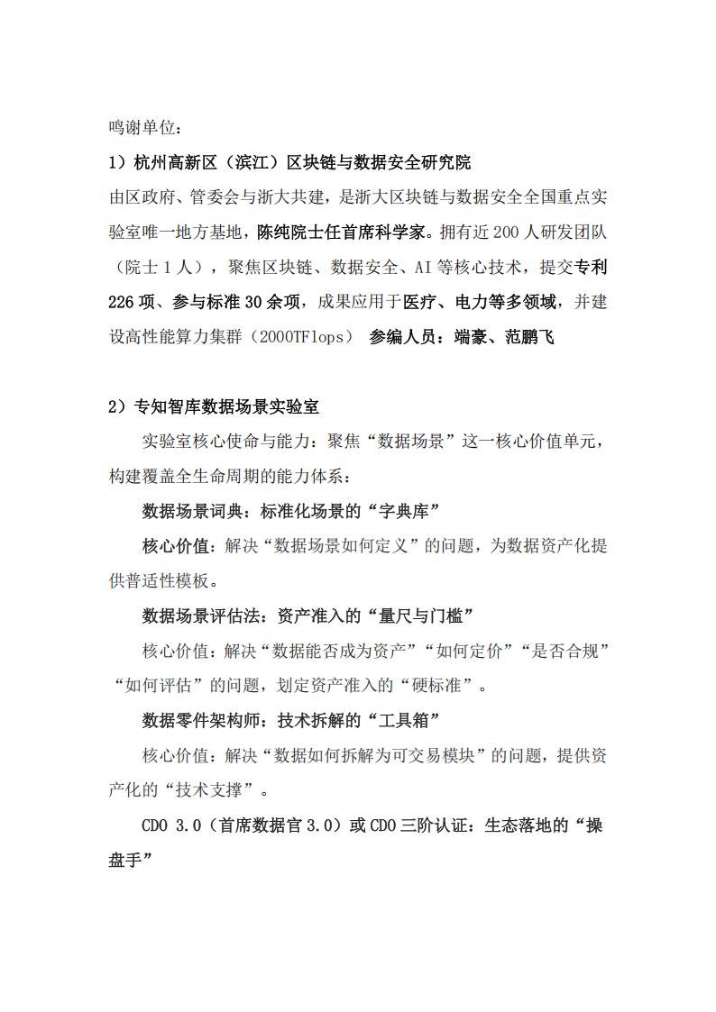 由区政府、管委会与浙大共建,是浙大区块链与数据安全全国重点实验室唯一地方基地,陈纯院士任首席科学家。拥有近200人研发团队(院士1人),聚焦区块链、数据安全、AI等核心技术,提交专利226项、参与标准30余项,成果应用于医疗、电力等多领域,并建设高性能算力集群(2000TFlops)参编人员:端豪、范鹏飞