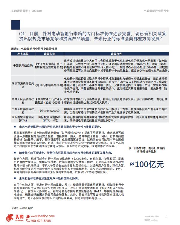 ■未来电动智能行李箱的行业标准将首先聚焦于安全性与质量的提升。