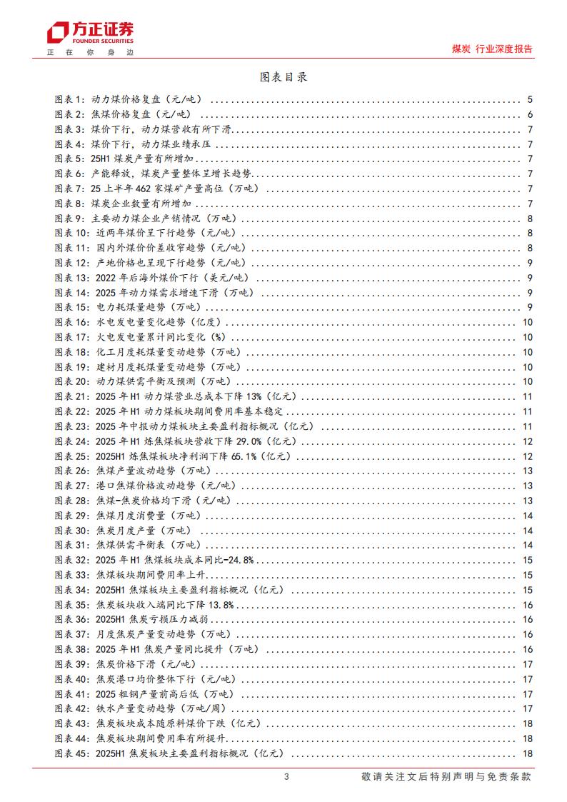 煤炭行业2025年中报,由于煤价下跌的影响,煤炭板块业绩存在不同程度的下滑。2025年H1煤炭行业合计收入5486亿元,同比-18.7%;实现归母净利润528亿元,同比-32.5%。2025年二季度,煤价下行趋势加快,而2024年同期煤价仍处于高位,因此煤炭行业整体继续承压。2025年Q2煤炭行业实现经营收入2692亿元,同比-19.6%;实现归母净利润241亿元,同比-35.5%。不同煤炭企业盈利能力分化,我们发现部分煤炭企业业绩韧性较强,主要集中在动力煤龙头企业,比如中国神华、中煤能源等,我们认为高比例的港口指数长协成为企业抗风险的主要因素。