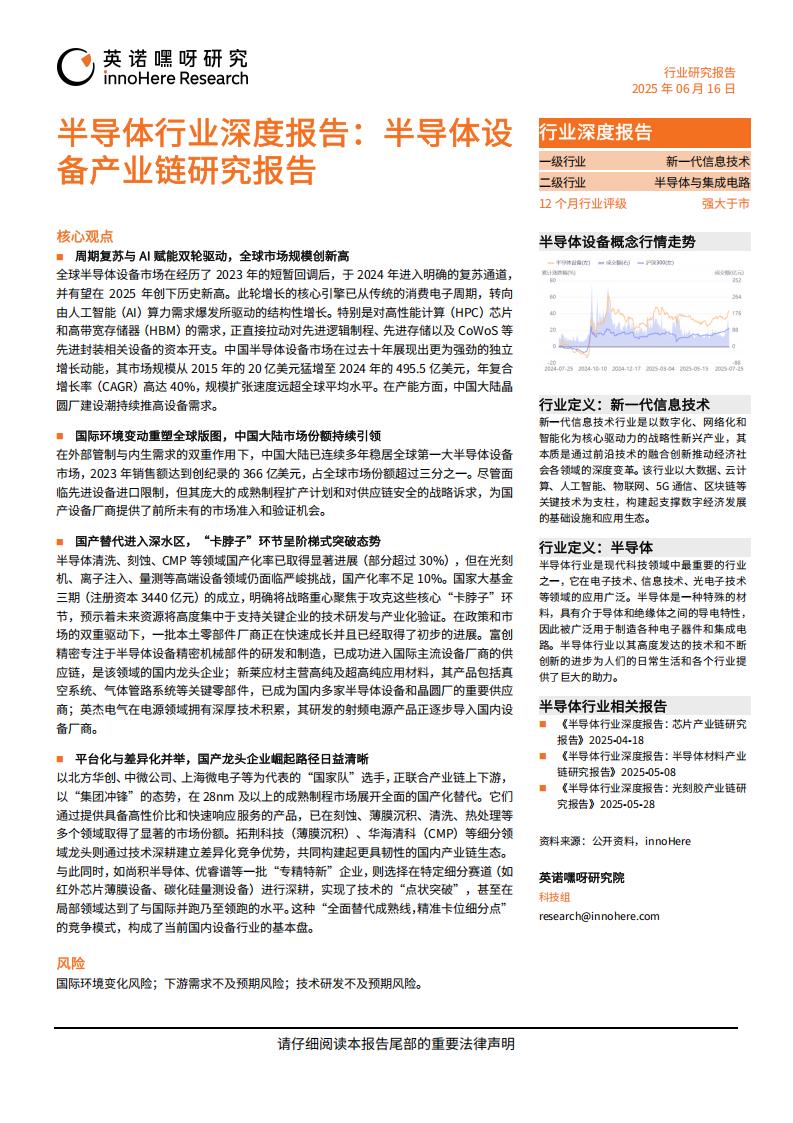 以北方华创、中微公司、上海微电子等为代表的“国家队”选手,正联合产业链上下游,以“集团冲锋”的态势,在28nm及以上的成熟制程市场展开全面的国产化替代。它们通过提供具备高性价比和快速响应服务的产品,已在刻蚀、薄膜沉积、清洗、热处理等多个领域取得了显著的市场份额。拓荆科技(薄膜沉积)、华海清科(CMP)等细分领域龙头则通过技术深耕建立差异化竞争优势,共同构建起更具韧性的国内产业链生态。与此同时,如尚积半导体、优睿谱等一批“专精特新”企业,则选择在特定细分赛道(如红外芯片薄膜设备、碳化硅量测设备)进行深耕,实现了技术的“点状突破”,甚至在局部领域达到了与国际并跑乃至领跑的水平。这种“全面替代成熟线,精准卡位细分点”的竞争模式,构成了当前国内设备行业的基本盘。