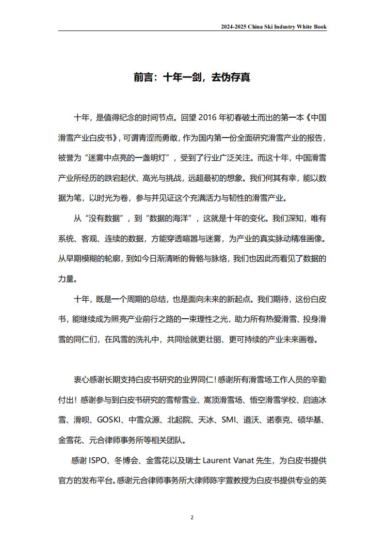 十年,既是一个周期的总结,也是面向未来的新起点。我们期待,这份白皮书,能继续成为照亮产业前行之路的一束理性之光,助力所有热爱滑雪、投身滑雪的同仁们,在风雪的洗礼中,共同绘就更壮丽、更可持续的产业未来画卷。