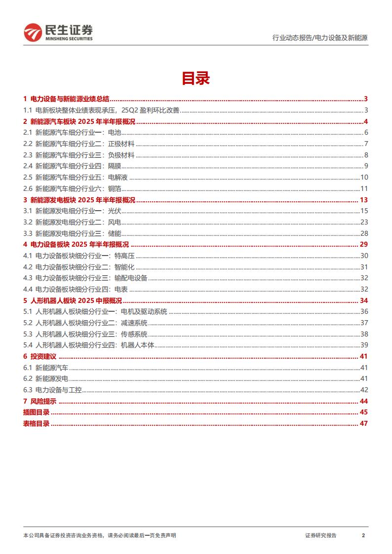 新能源发电板块:1)光伏:业绩阶段性承压。2025H1实现营业收入5,542.61亿元,同比减少13.29%,实现归母净利润-148.71亿元,同比增加102.77%;2025Q2实现营业收入3063.80亿元,同比减少10.12%,环比增加23.24%,实现归母净利润-66.20亿元,同比减少28.16%,环比增加180.21%。2)风电:25Q2营收净利双增。2025H1行业实现营收2281.18亿元,同比增长24.2%;实现归母净利润101.94亿元,同比增长16.0%;2025Q2风电行业实现营业收入1356.57亿元,同比增长27.36%;实现归母净利润63.66亿元,同比增长18.88%。3)储能:营收利润向好。2025H1储能板块实现营收3141.69亿元,同比增长13%;实现归母净利润425.11亿元,同比增长31%。