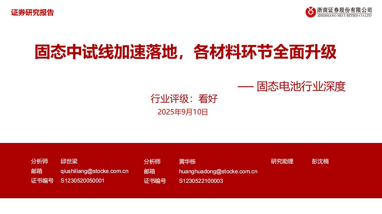 固态电池要求材料、设备、封装、整车四大环节高度协同优化,但目前行业仍多为单点突破。