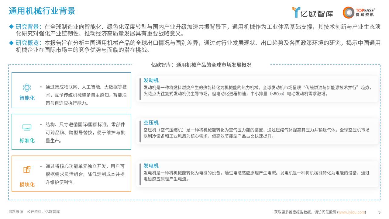 研究概览:本报告旨在分析中国通用机械产品的全球出口情况与国别差异,通过对行业发展现状、出口趋势及各国政策环境的研究,揭示中国通用机械企业在国际市场中的竞争优势与面临的潜在挑战。