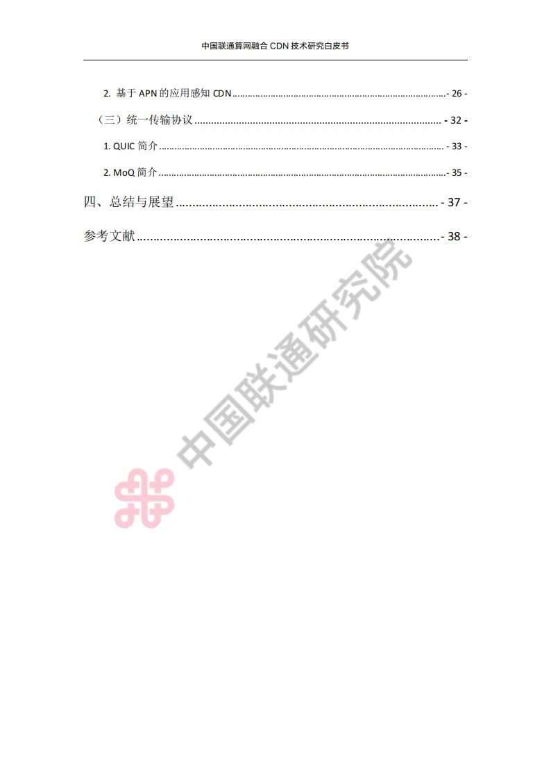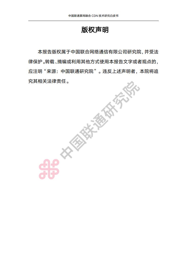 结合中国联通CDN平台的建设成果,本白皮书对CDN技术的发展趋势和互联网新兴视频应用所带来的新需求和新挑战进行了总结,并从如何发挥电信运营商网络优势的角度,对算网融合CDN涉及的核心关键技术进行了初步的分析和思考,希望能够为读者提供一定的参考和帮助。联合编写单位:(排序不分先后)