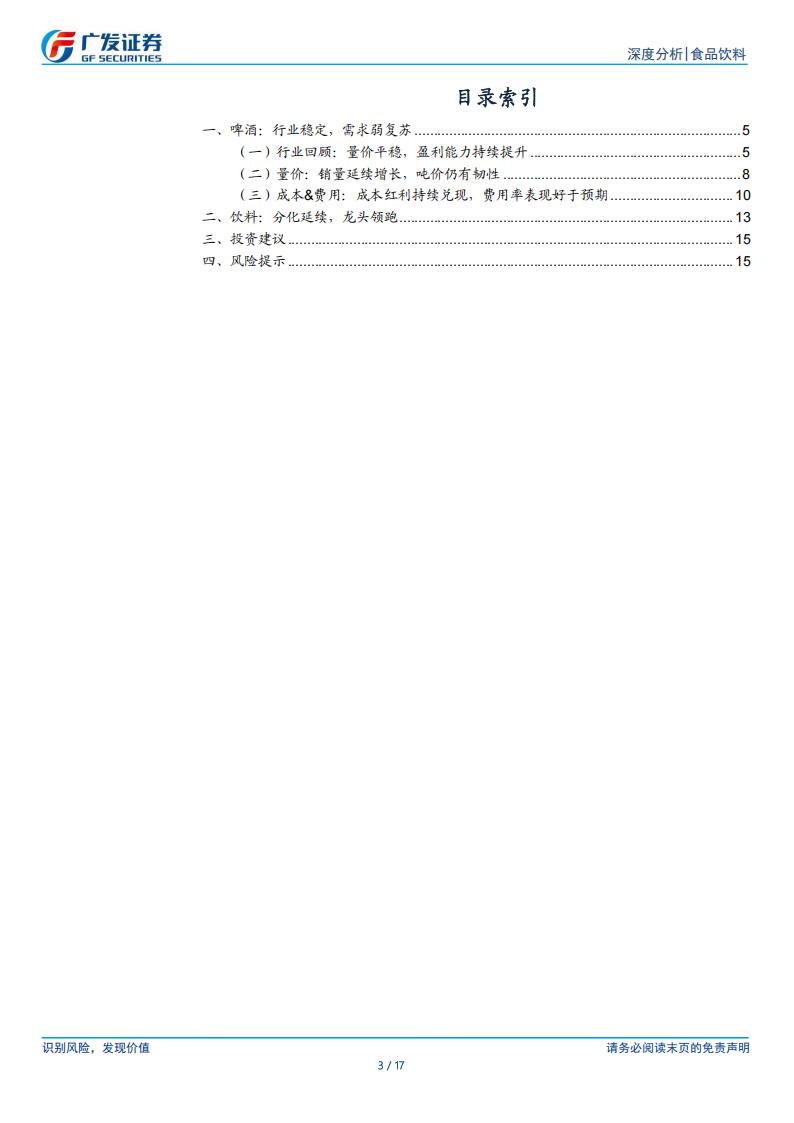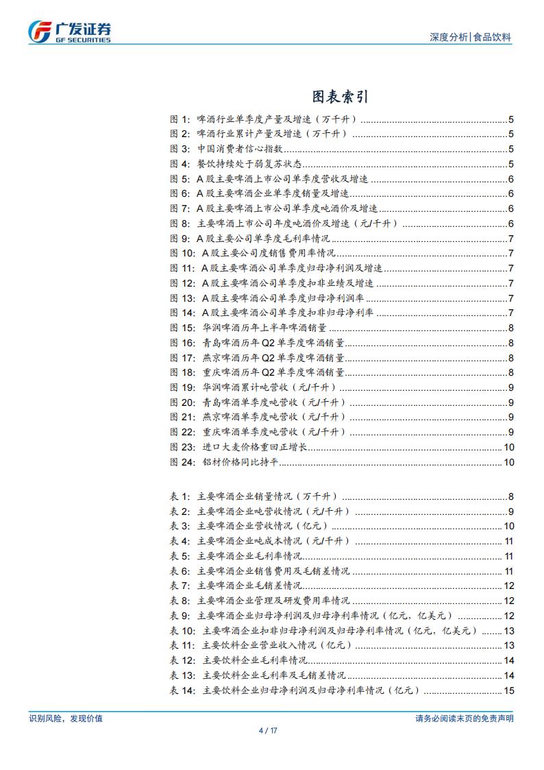 增长,同时吨价增速表现好于Q1,当前餐饮消费不振导致渠道结构变化,消费者追求性价比消费使得啤酒消费向主流价格带集中,成本回落影响下各家几无主动提价,啤酒行业“结构优化但报表吨价未显著增长”的现象突出,营收普遍增长。
