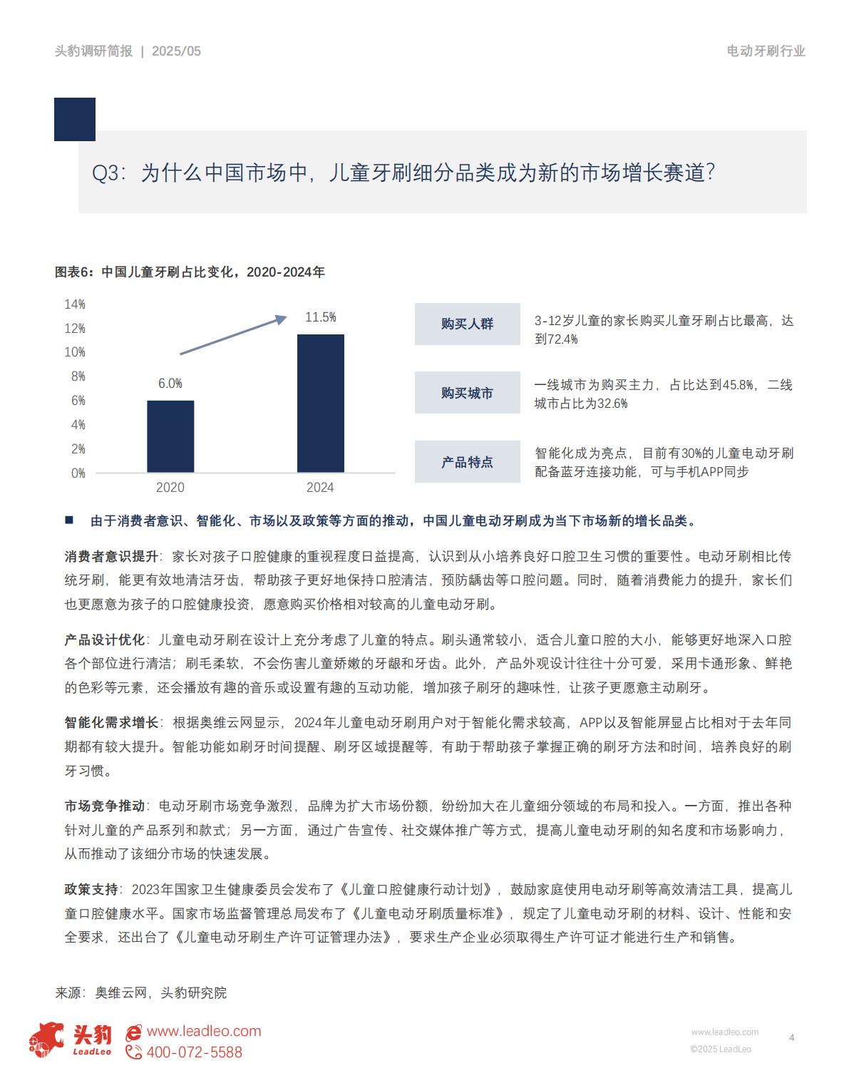 ■由于消费者意识、智能化、市场以及政策等方面的推动,中国儿童电动牙刷成为当下市场新的增长品类。
