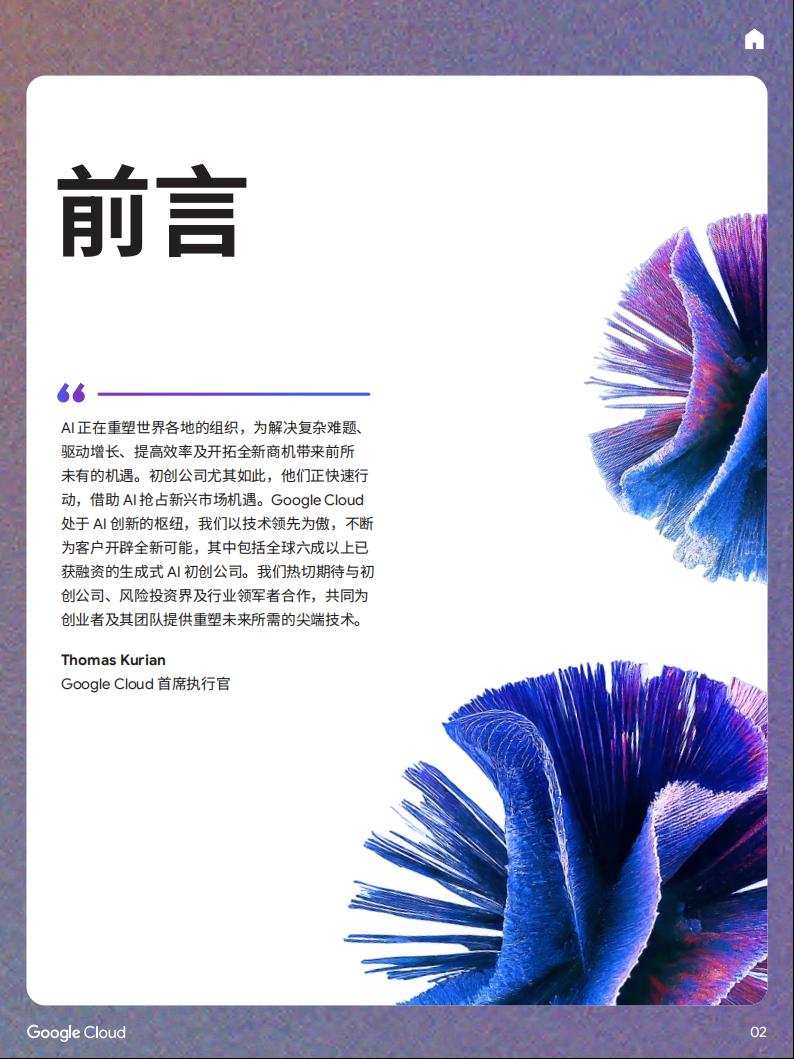 Google Cloud很荣幸能站在AI创新的最前沿,我们引以为傲的技术领先性,正不断为我们的客户,包括全球超过六成已获融资的生成式AI初创公司,开辟新的可能。我们深信,通过与初创公司、风险投资界以及行业领军者的紧密合作,我们将能共同为广大创业者及其团队提供重塑未来所需的尖端技术与洞见。