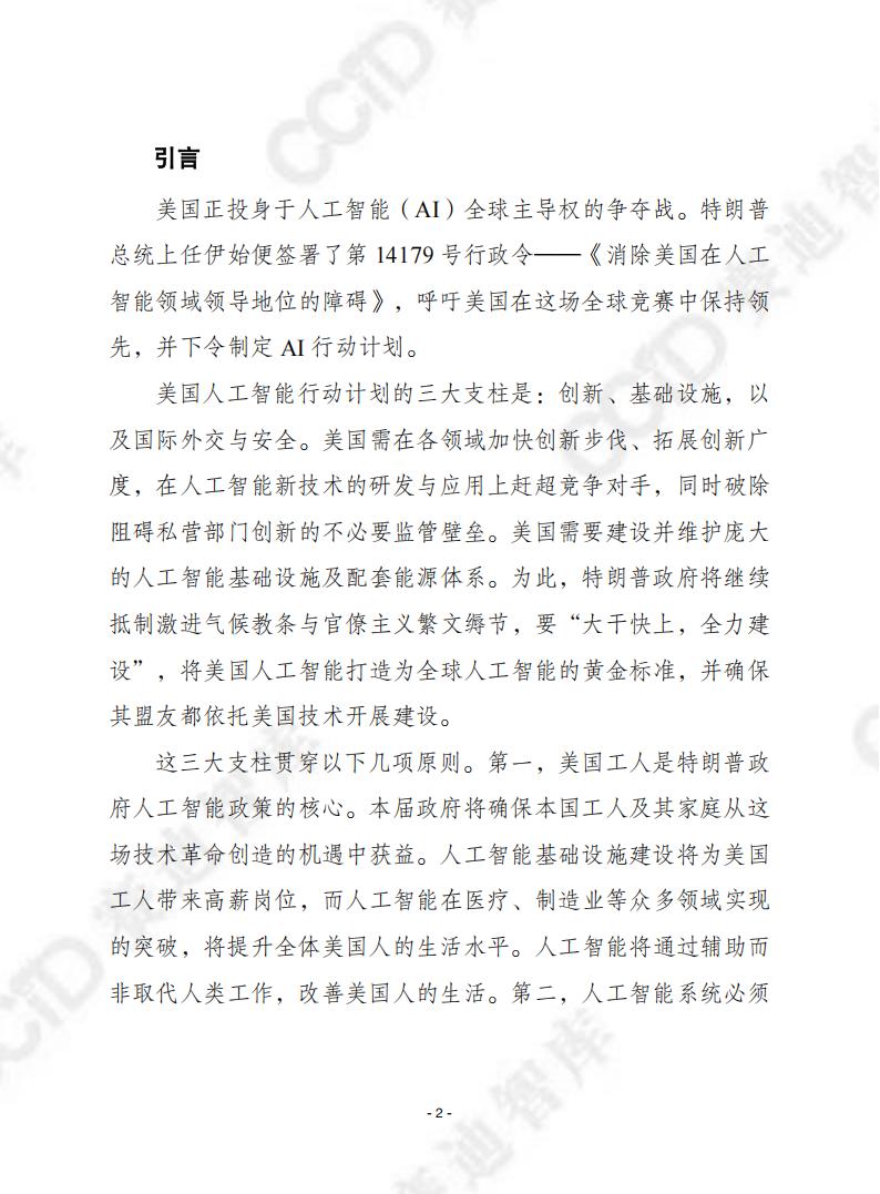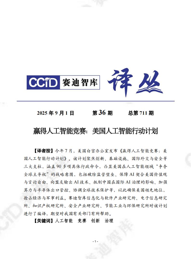 美国正投身于人工智能(AI)全球主导权的争夺战。特朗普总统上任伊始便签署了第14179号行政令——《消除美国在人工智能领域领导地位的障碍》,呼吁美国在这场全球竞赛中保持领先,并下令制定AI行动计划。