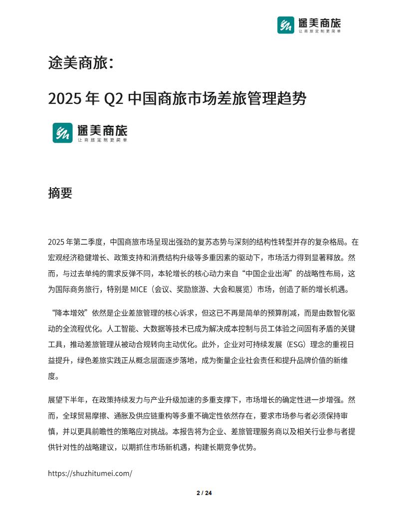 展望下半年,在政策持续发力与产业升级加速的多重支撑下,市场增长的确定性进一步增强。然而,全球贸易摩擦、通胀及供应链重构等多重不确定性依然存在,要求市场参与者必须保持审慎,并以更具前瞻性的策略应对挑战。本报告将为企业、差旅管理服务商以及相关行业参与者提供针对性的战略建议,以期抓住市场新机遇,构建长期竞争优势。