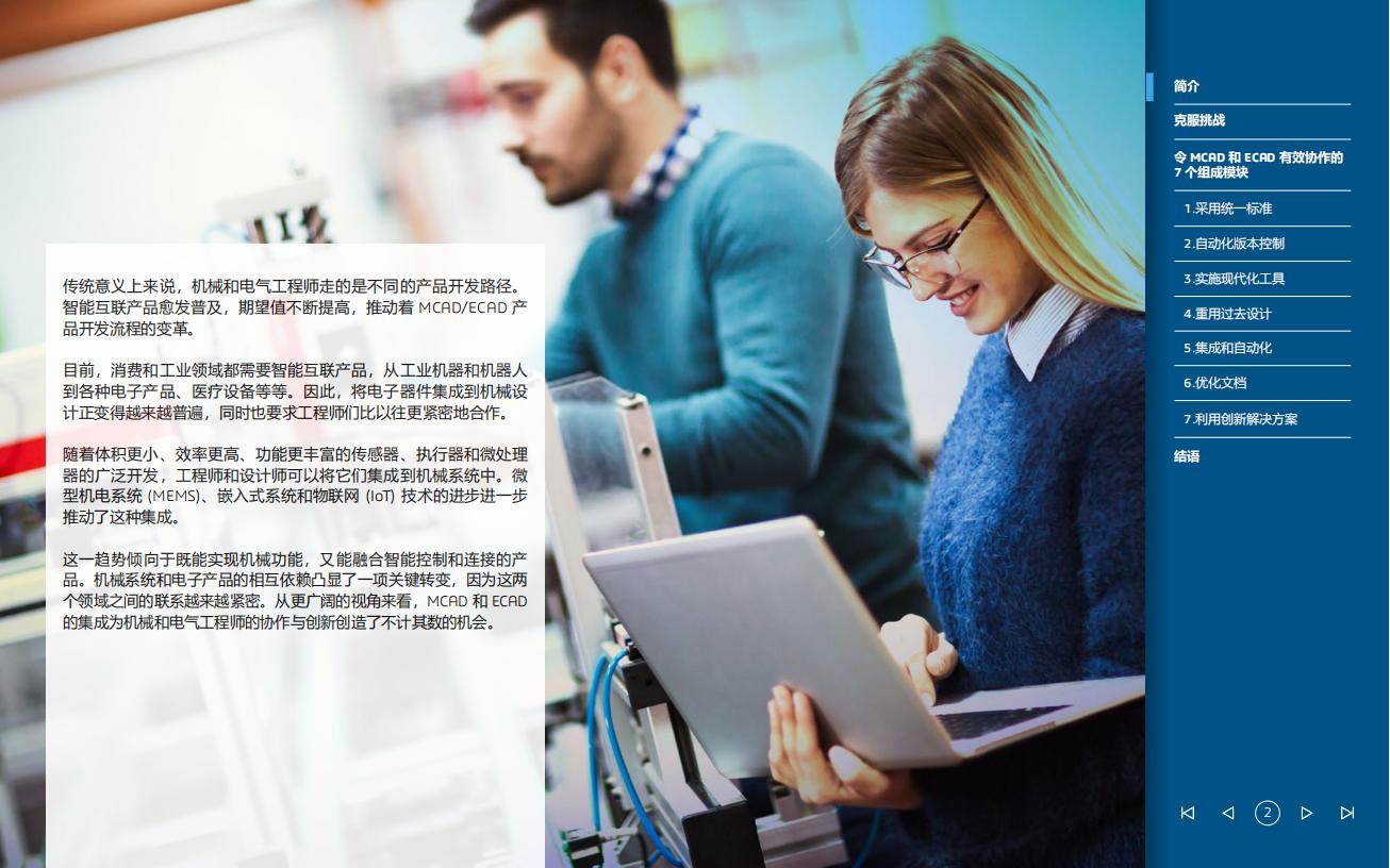 目前,消费和工业领域都需要智能互联产品,从工业机器和机器人到各种电子产品、医疗设备等等。因此,将电子器件集成到机械设计正变得越来越普遍,同时也要求工程师们比以往更紧密地合作。